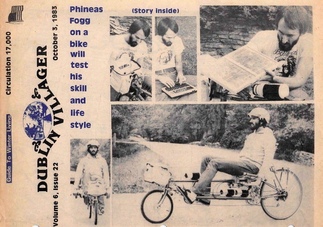 I climbed back on the bike and lumbered down Dublin Road. The house looked the same outside, tall grass matted from rain, bags of advertising litter hanging mildewed from the doorknob. A mushy Dublin Villager contained a gushy story about my trip, and I stood on the porch reading and wincing in embarrassment. “Only the sands of time record Steve Roberts’ journey and whether it was a success or failure.” Hmm. With a wave to a passing neighbor I let myself in.