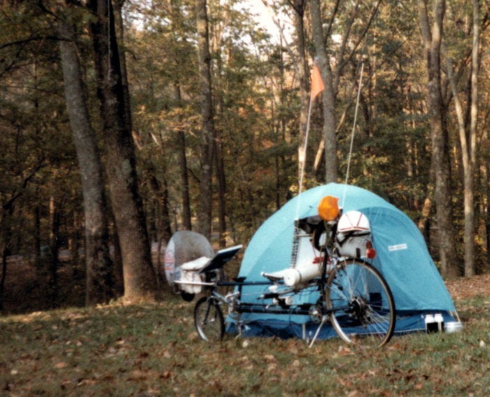 I explained the bike dozens of times, glided silently between dark campus buildings, flashed my lights at other cyclists, and discovered the timeless appeal of the college town. At last, chilly and tired, I was taken in by two students who fixed me tea and pulled a classic all-nighter of test-cramming while I drifted into slumber.